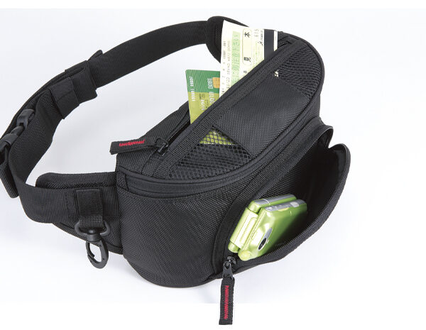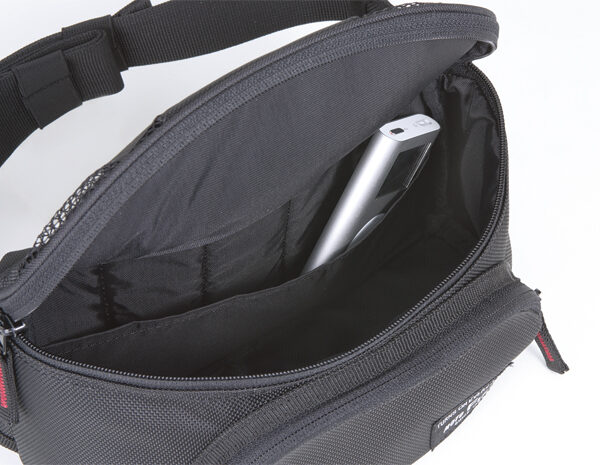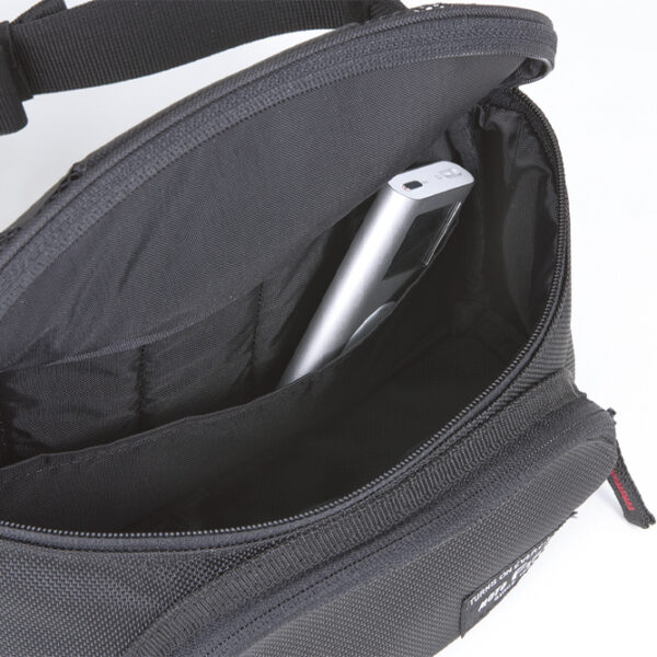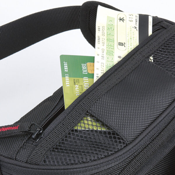 ■前部のファスナー付きポケットは、小物やカード類の収納に便利。