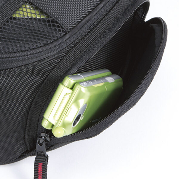 ■上面がファスナー付のメッシュポケットになっているので、収納物が確認しやすい。