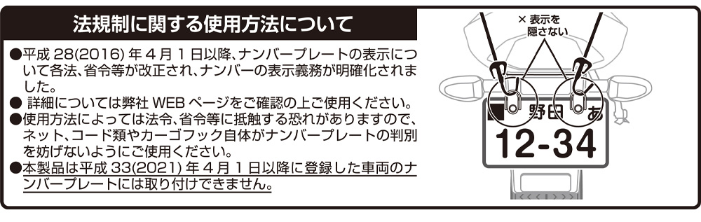 ■ナンバープレート等6mmネジを利用して取付けができる便利で確実な荷掛けフック。