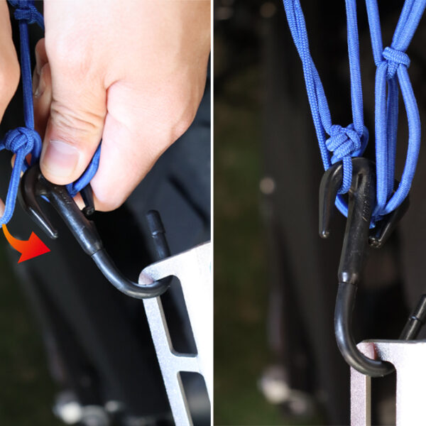 最強フックと、大幅伸縮ゴムでガッチリ荷物をホールド