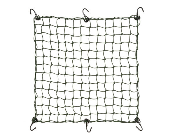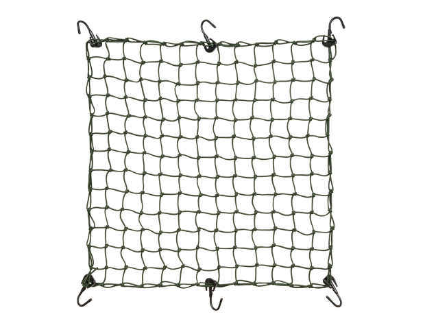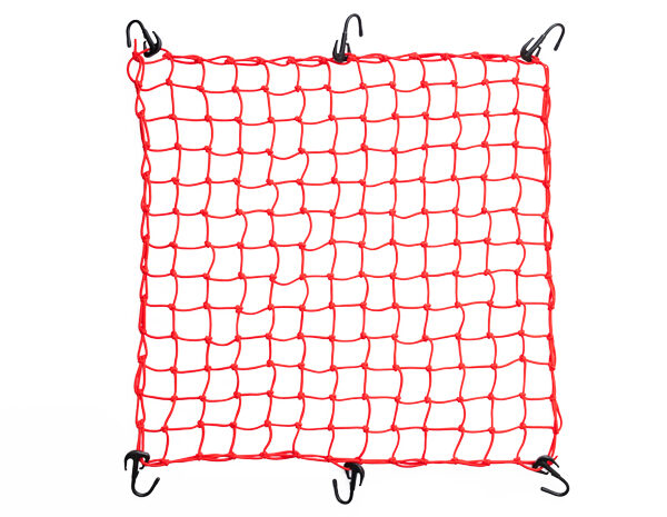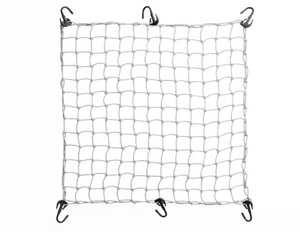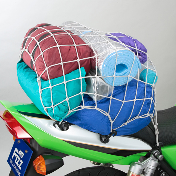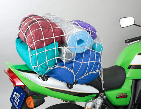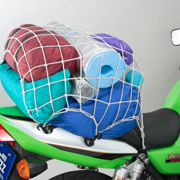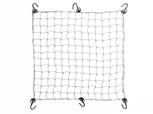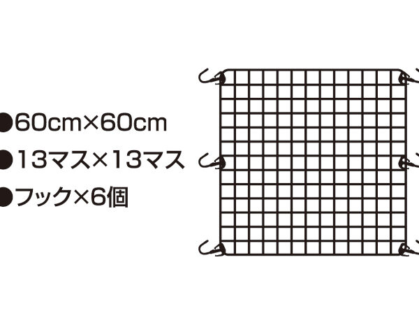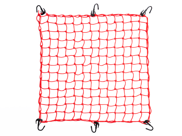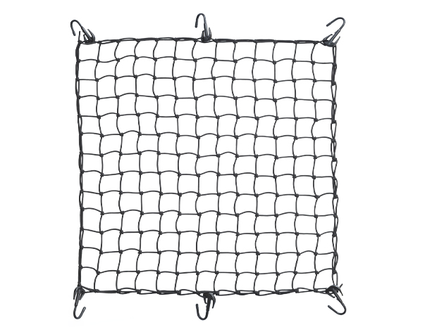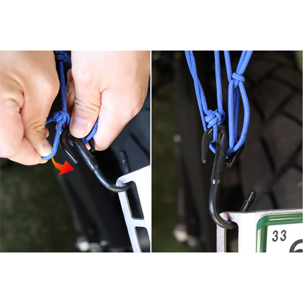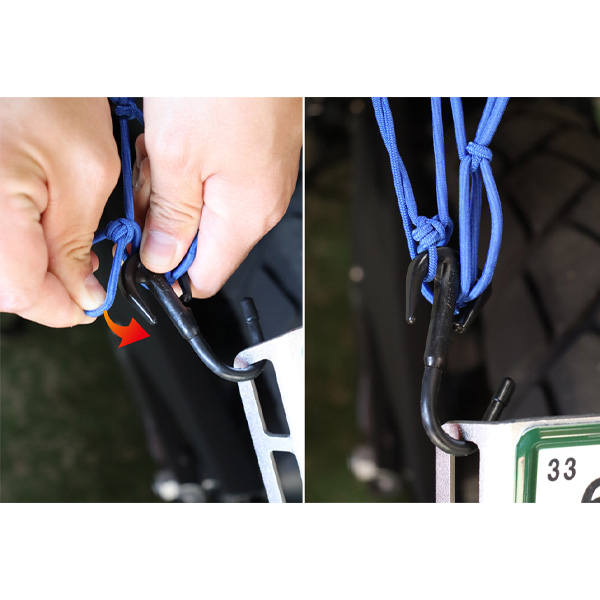 ネットの網目を調整用フックに引っ掛ける事で、小さい荷物にも対応します。