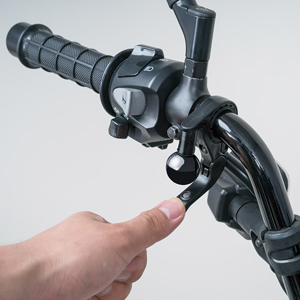 発音/消音の切り替えがワンタッチ操作。発音モード時は低速走行でもリング音を発します。