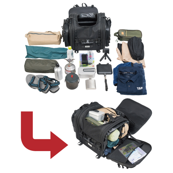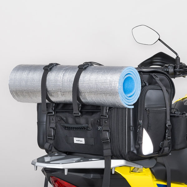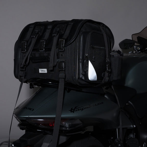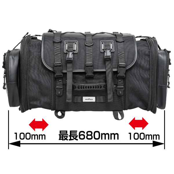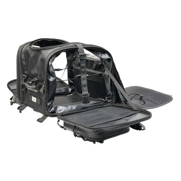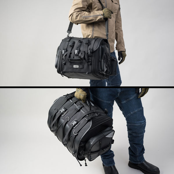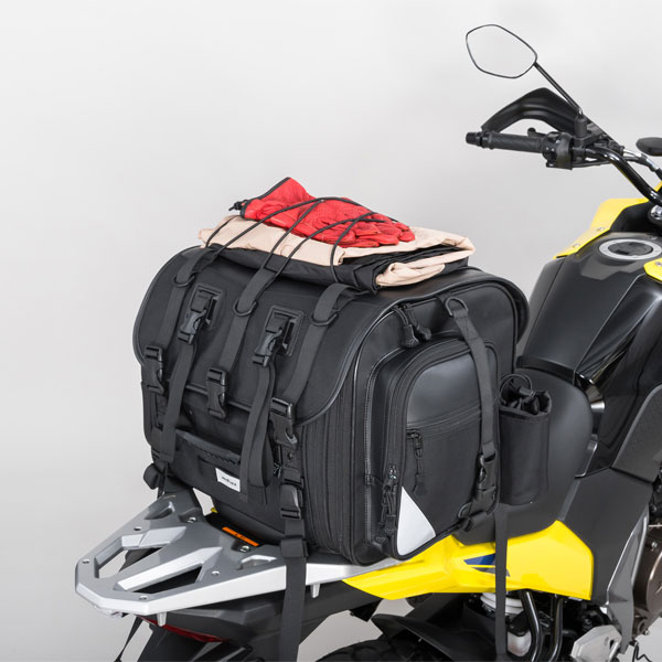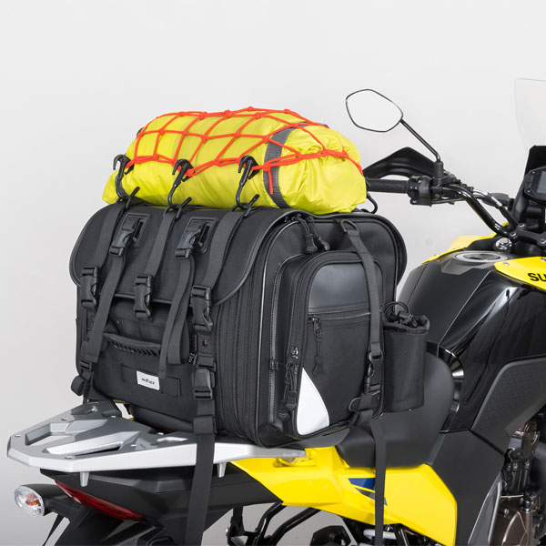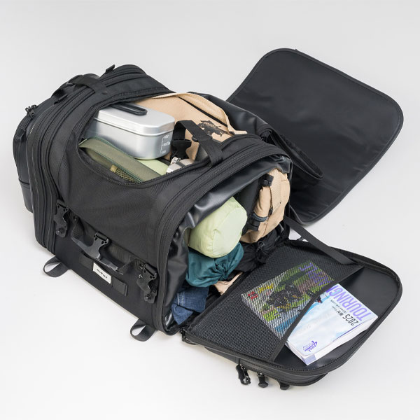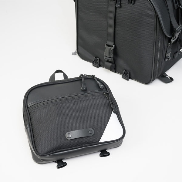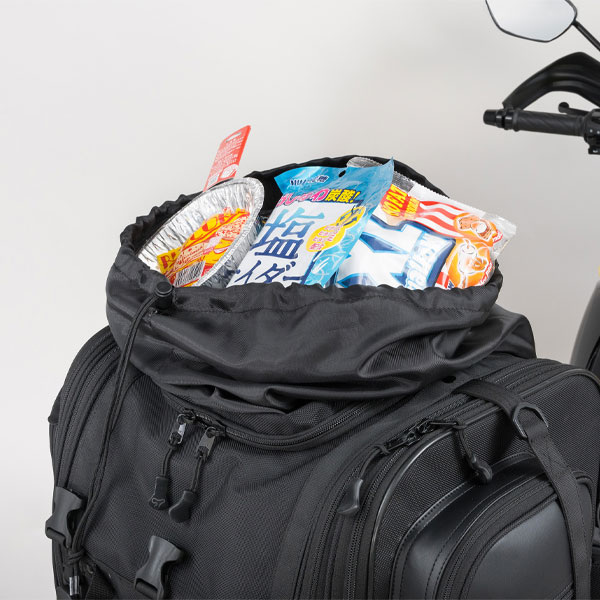 本体の荷物を崩さずに、不意に増えた荷物やツーリング先で着替えた汚れもの等の収納に便利な収納袋を本体上面に装備。