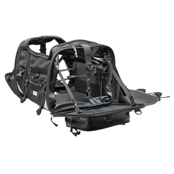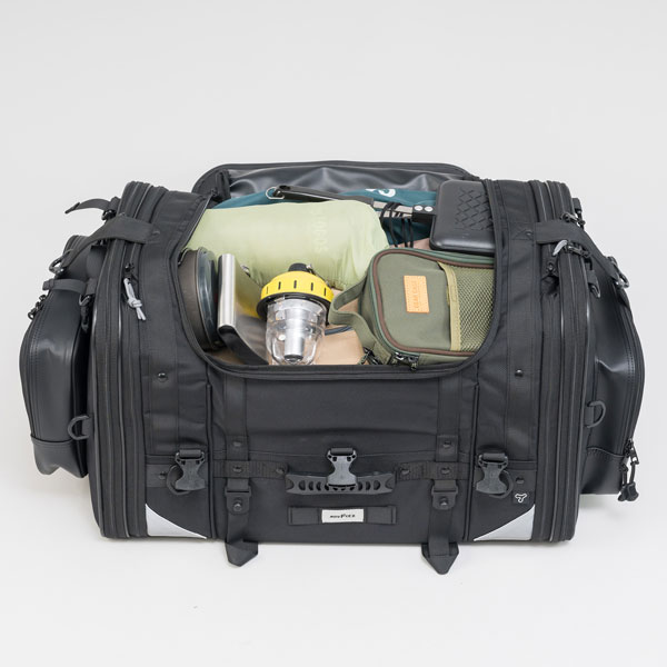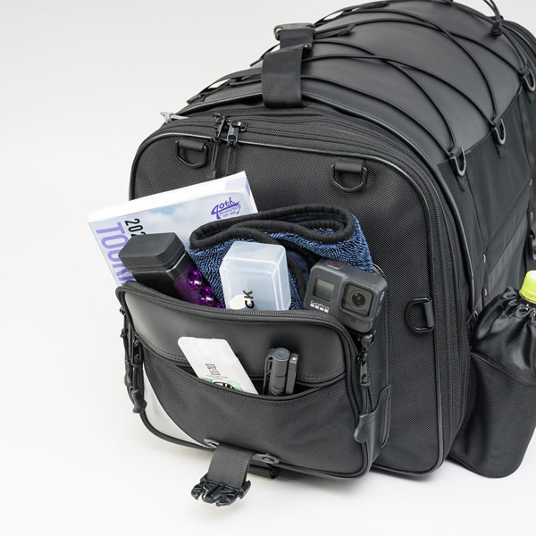 本体の荷物を崩さずに、不意に増えた荷物やツーリング先で着替えた汚れもの等の収納に便利な収納袋を本体上面に装備。