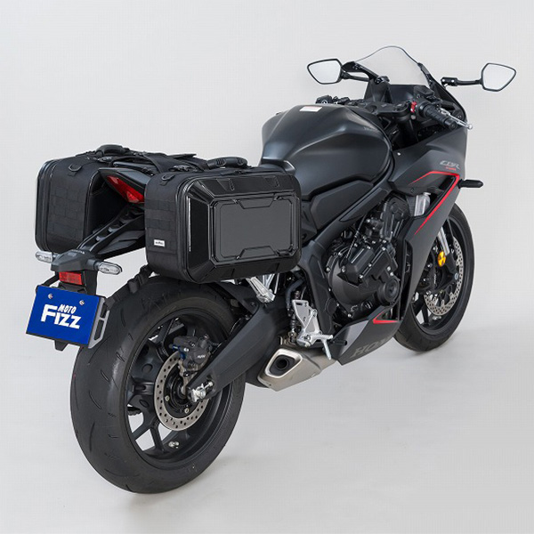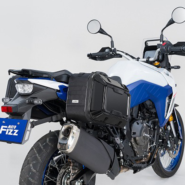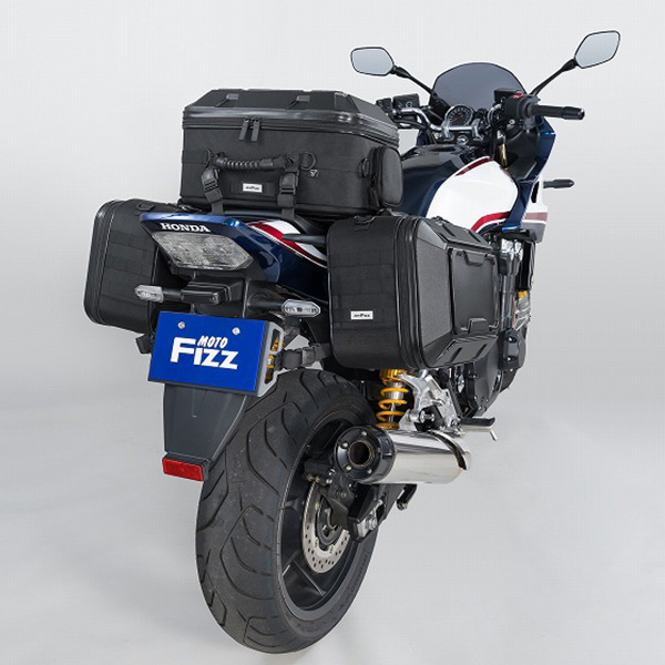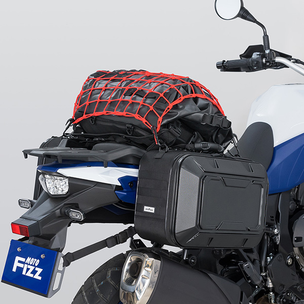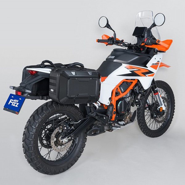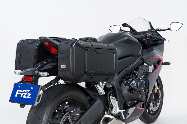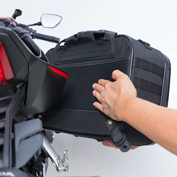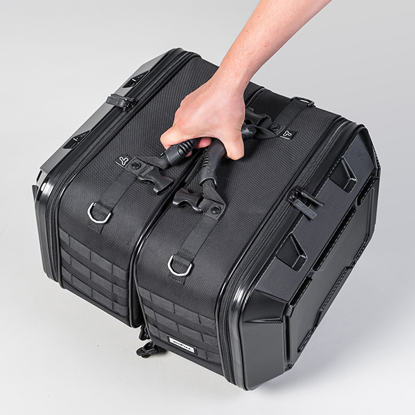 軽量・頑丈なポリカーボネイトと生地のハイブリッド設計。ハードケースには無い丈夫さと車両との一体感を両立しています。