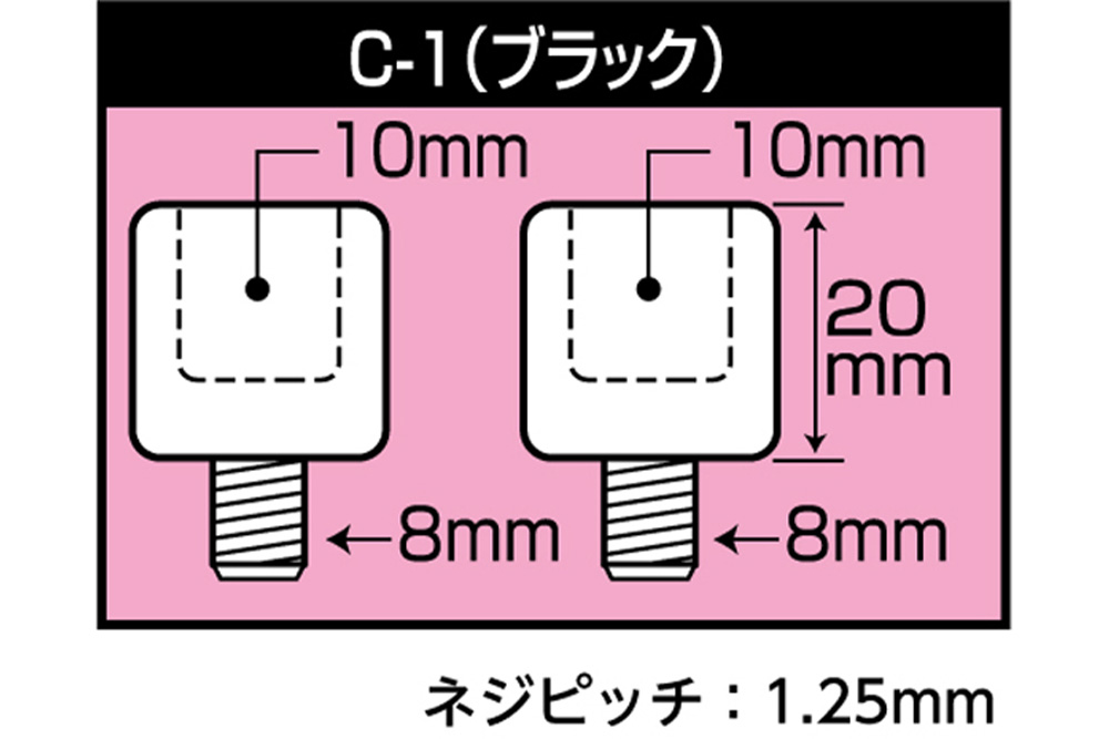 ■8mm・10mmのネジ径を問わずバックミラーをネジ径変換することにより、取付けを可能にするアダプターです。