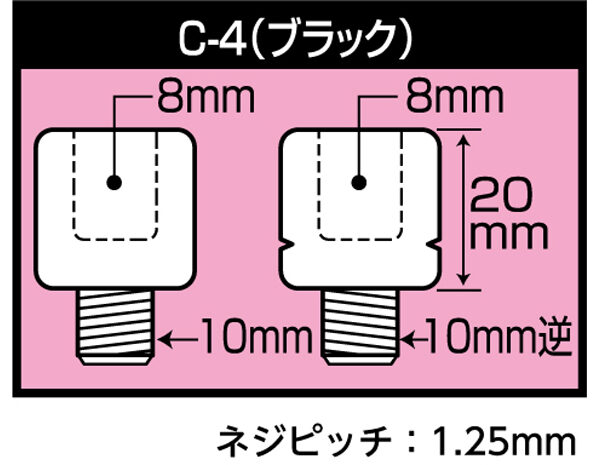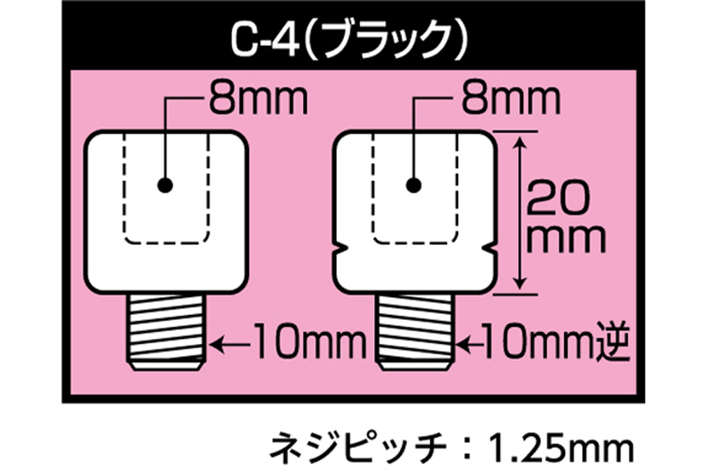 ■8mm・10mmのネジ径を問わずバックミラーをネジ径変換することにより、取付けを可能にするアダプターです。