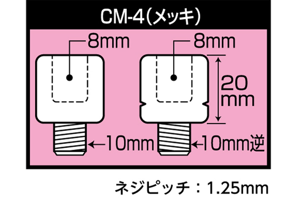 ネジ径 | 8mm正ネジ→10mm逆ネジ、8mm正ネジ→10mm正ネジ(ピッチ:1.25mm) |