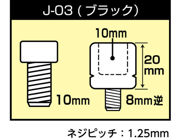 ネジ径 ボルト:10mm正ネジ  アダプター:10mm正ネジ→8mm逆ネジ