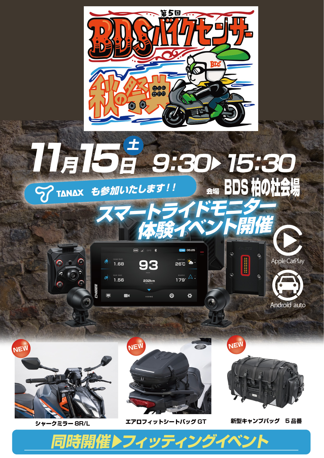 当日は、話題のスマートライドモニターの体験イベントと新製品のバッグの展示、及び展示即売会を行う予定です。