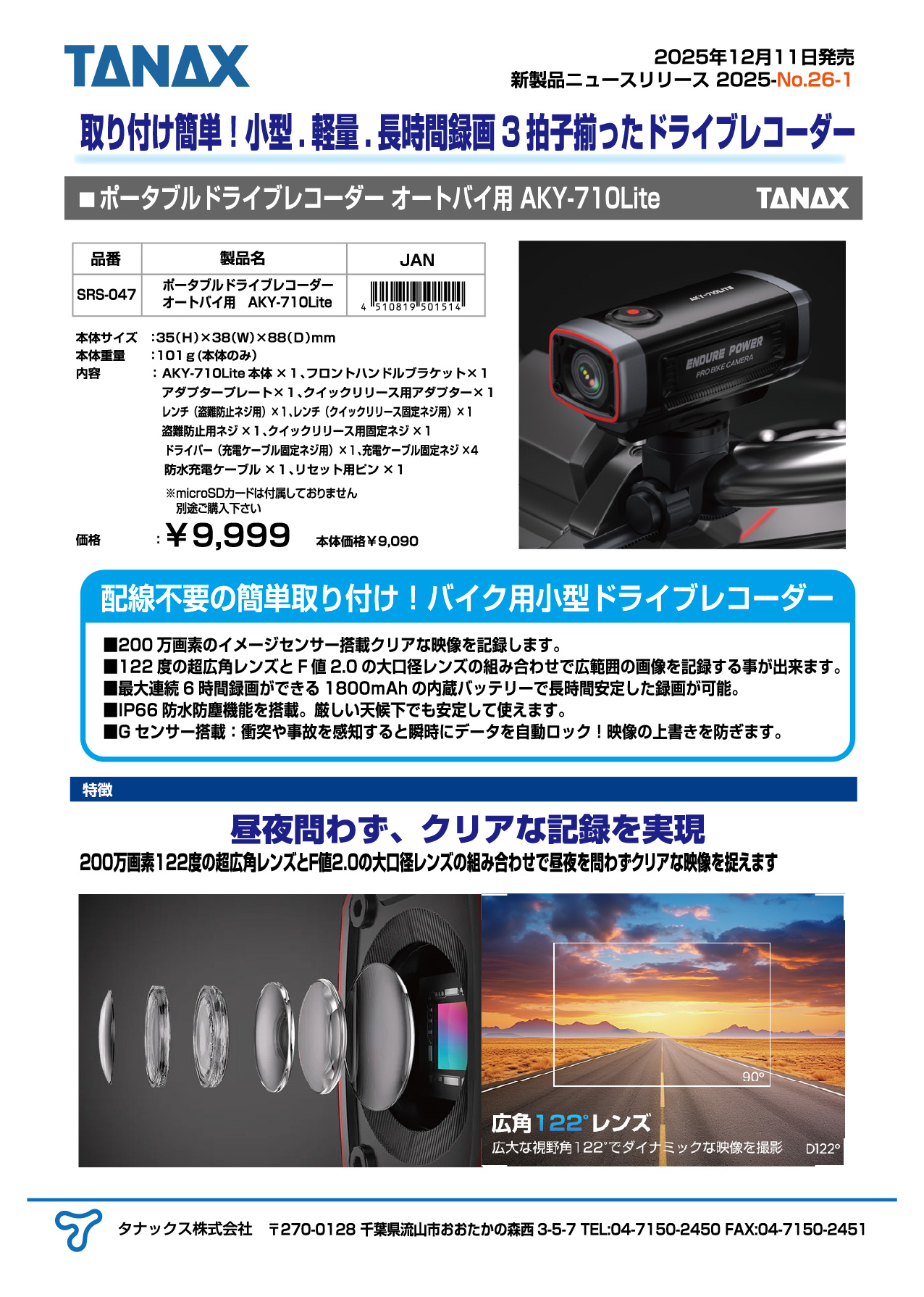 取り付け簡単!小型.軽量.長時間録画3拍子揃ったドライブレコーダーを発売します!