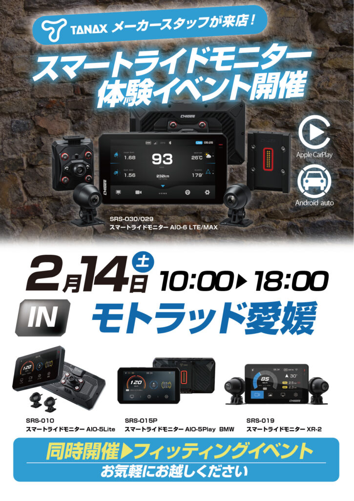 2/14(土)  モトラッド愛媛にてタナックス展示イベント開催いたします!