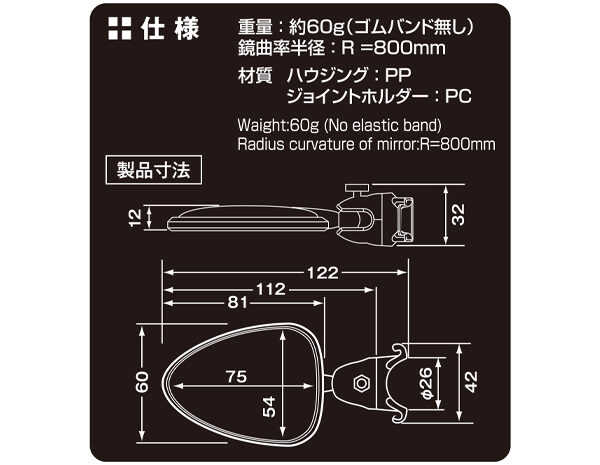 ■ひずみの少ない本格ガラスミラーで後方視界くっきり800mmRの曲率で小さくても広い視界を得られます